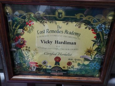 I studied herbalism online with Dr. Nicole Apelian, Ph.D. Using her tools on foraging in the wild I gained practical applications of foraging both in the wild and in the garden. I learned about the health benefits of different plant products and how to use them. Most of my current recipes have come from Dr. Apelian's book "The Forgotten Home Apothecary." I continue to actively research new information on natural cures and the health benefits of plants as I begin developing my own recipes.